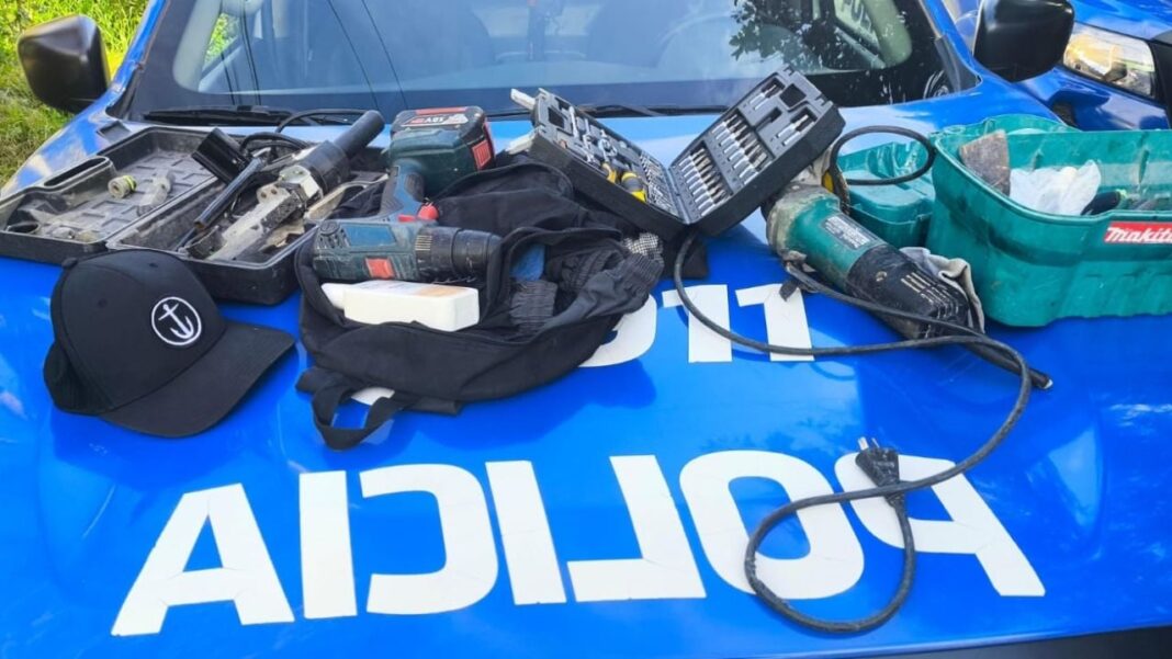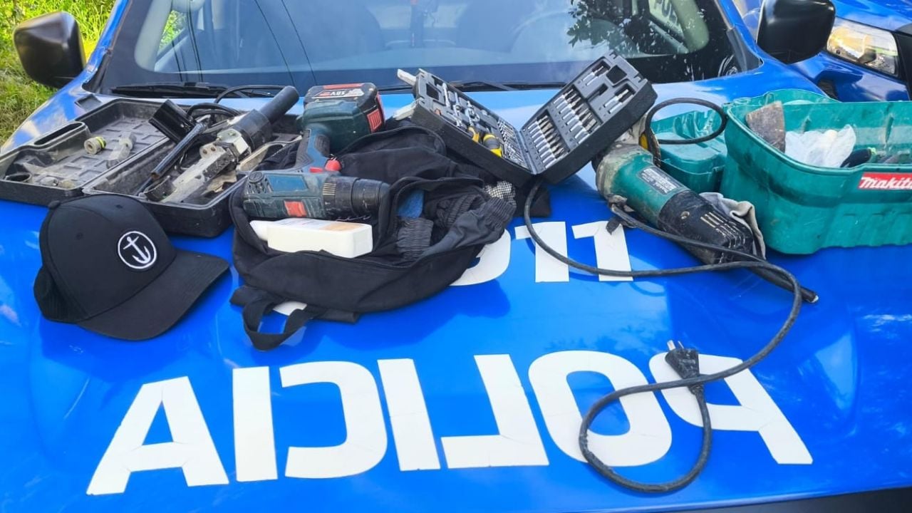 Entre los elementos recuperados se encuentran una amoladora, un taladro inalámbrico, una termofusora, diversas llaves y otras herramientas de trabajo. Los detenidos fueron trasladados a sede policial y quedaron a disposición de la Justicia.