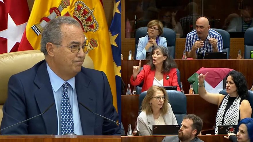 El presidente de la Asamblea de Madrid, Enrique Ossorio, ha exigido este jueves a los servicios de la Cámara que retirasen una bandera de Palestina, colocada en un asiento del grupo parlamentario de Más Madrid, durante un tenso debate en el Pleno semanal.