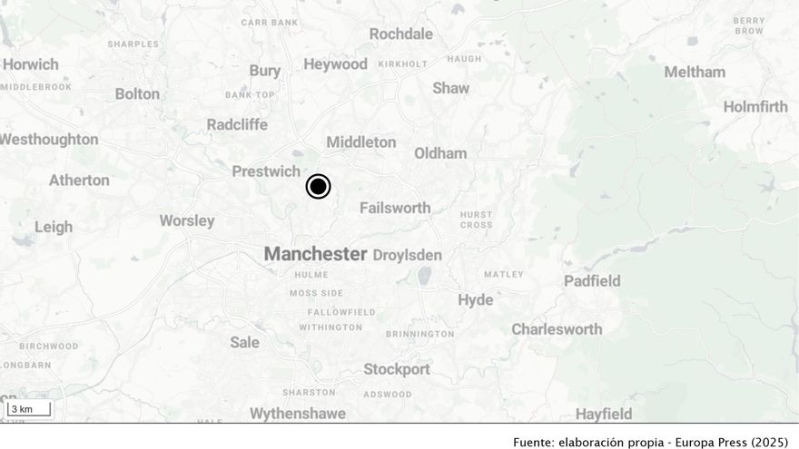 InicioSociedadUn hombre acuchilla a varias personas en una sinagoga de Mánchester Sociedad 2 de octubre de 2025 Un hombre acuchilla a varias personas en una sinagoga de Mánchester FacebookTwitterPinterestWhatsApp La Policía de Mánchester confirmó este jueves que ha disparado al presunto autor de un acuchillamiento múltiple en una sinagoga de Mánchester, sin que de momento se conozca su estado ni el de las víctimas. TEMAS Reino Unido FacebookTwitterPinterestWhatsApp Más noticias Sociedad Un hombre mata a su padre en Barcelona e intenta suicidarse en el Metro 14 de noviembre de 2025 Sociedad Un hombre mata a su padre en Barcelona e intenta suicidarse en el Metro 14 de noviembre de 2025 Sociedad Alumnos del CENMA Bialet Massé limpiaron los márgenes del Arroyo Suncho Huayco 14 de noviembre de 2025 Sociedad La inflación repunta en octubre al 3,1% y alcanza la tasa más alta de los últimos 16 meses 14 de noviembre de 2025 Noticias Relacionadas Sociedad Un hombre mata a su padre en Barcelona e intenta suicidarse en el Metro 14 de noviembre de 2025 Sociedad Un hombre mata a su padre en Barcelona e intenta suicidarse en el Metro 14 de noviembre de 2025 Sociedad Alumnos del CENMA Bialet Massé limpiaron los márgenes del Arroyo Suncho Huayco 14 de noviembre de 2025 Sociedad La inflación repunta en octubre al 3,1% y alcanza la tasa más alta de los últimos 16 meses 14 de noviembre de 2025 Sociedad Caso Cecilia Strzyzowski: pidieron que los Sena sean declarados culpables 14 de noviembre de 2025