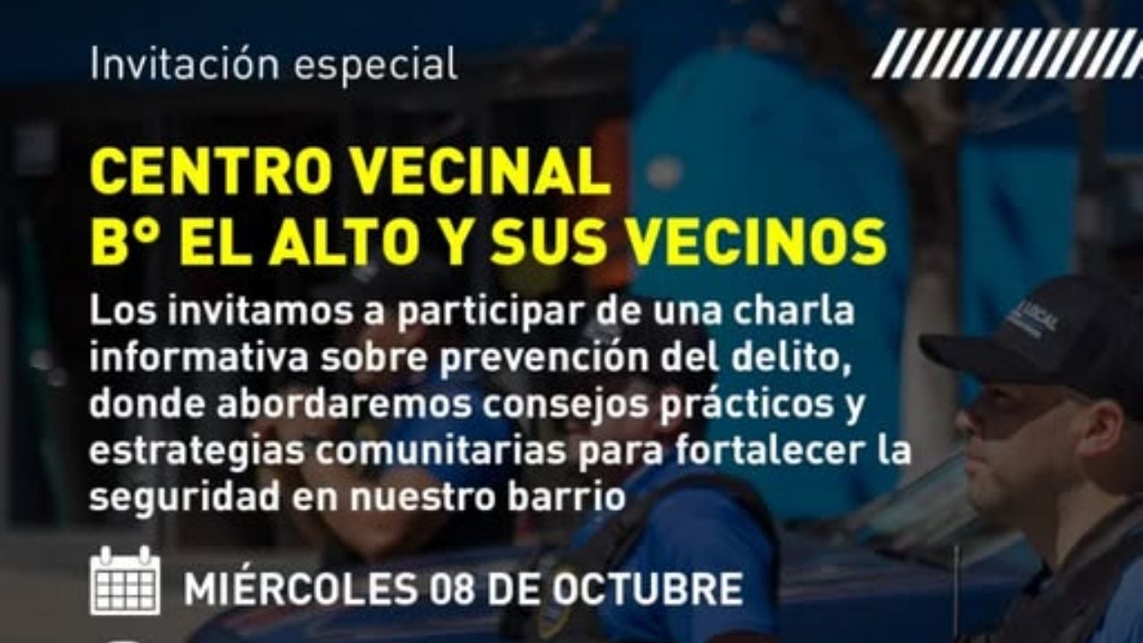 La Falda. Con el objetivo de promover la prevención del delito y reforzar los lazos vecinales, el centro vecinal del Barrio El Alto de La Falda junto a la Guardia Local de Prevención y Convivencia y el programa Ojos en Alerta, convocaron a los vecinos a participar de una charla informativa sobre seguridad comunitaria.