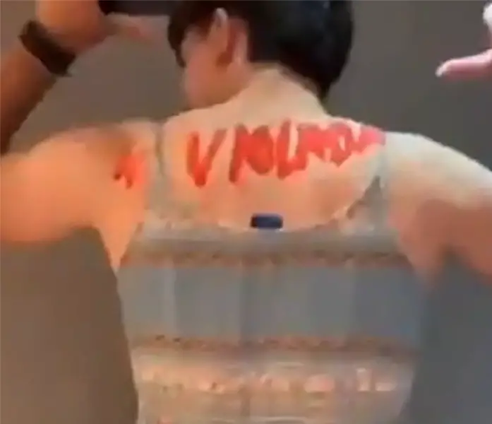 En las imágenes, se puede observar al joven con un vestido roto, las piernas manchadas con una sustancia roja simulando sangre y la palabra “violada” escrita en su espalda. El video fue originalmente compartido en la cuenta de Instagram de la promoción, lo que provocó una reacción inmediata.