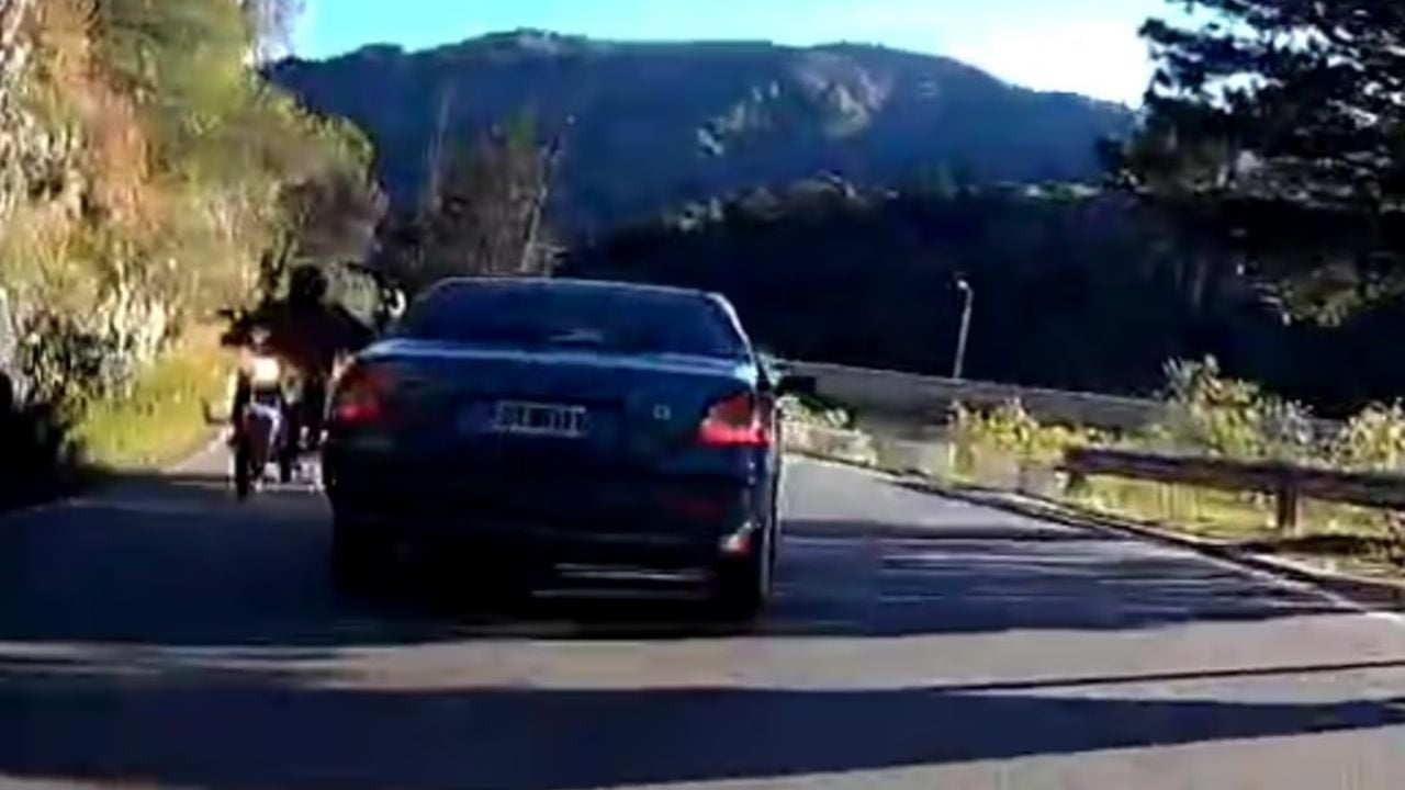 Un motociclista que transitaba desde Villa Carlos Paz hacia el Valle de Calamuchita grabó una secuencia en las inmediaciones del embalse, cuando el vehículo casi impacta frontalmente contra tres motos.