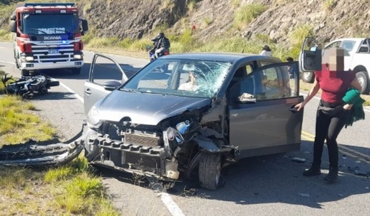 En horas de la tarde de este domingo y por causas que se tratan de establecer, en la ruta provincial E-98 de Córdoba, conocida como Camino del Cuadrado, kilómetro 6 1/2, se produjo un siniestro vial que involucró a una motocicleta marca Bajaj y a un automóvil Volkswagen Up.
