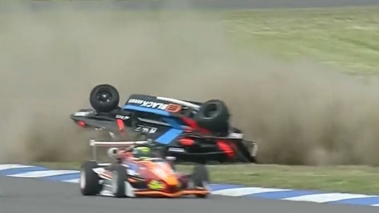 El incidente se produjo en la vuelta 11 de las 12 correspondientes a la competencia, cuando cuatro vehículos disputaban posiciones al final de la recta principal. Barbara perdió levemente la línea y rozó la rueda delantera de Sebastián Caram, quien había logrado una remontada notable tras partir desde la 13ª posición por el sistema de grilla invertida. El contacto desestabilizó a ambos: Caram salió despedido hacia el pasto, mientras que el monoplaza de Barbara volcó, se trabó con el asfalto y terminó dando varios tumbos en el aire.