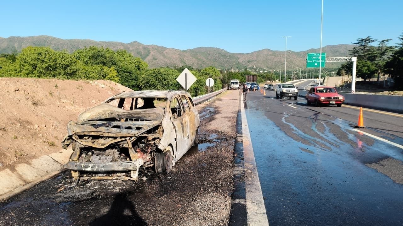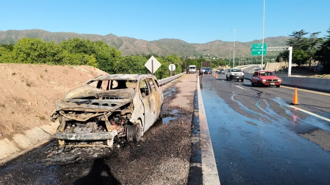 Un vehículo se prendió fuego esta tarde cuando circulaba por la Autovía de Punilla y todo pudo haber terminado en una tragedia. Se trata de un automóvil Chevrolet Spin que fue consumido por las llamas a la altura de la localidad de Bialet Massé.