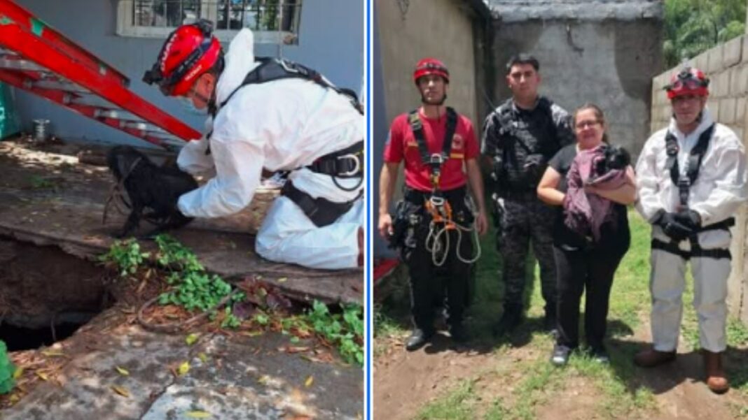 Según se informó, los bomberos utilizaron sistemas pescantes para asegurar al perro y retirarlo de manera controlada, logrando extraerlo sin que sufriera lesiones. La maniobra demandó precisión y cuidado debido a la profundidad del pozo y las condiciones del lugar.