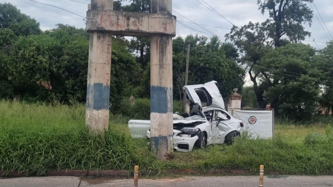 El hecho se registró en la intersección de avenida Cruz Roja Argentina y calle Los Incas, donde, por causas que aún se investigan, un automóvil BMW modelo 240i impactó de manera violenta contra un poste de hormigón de alta tensión.