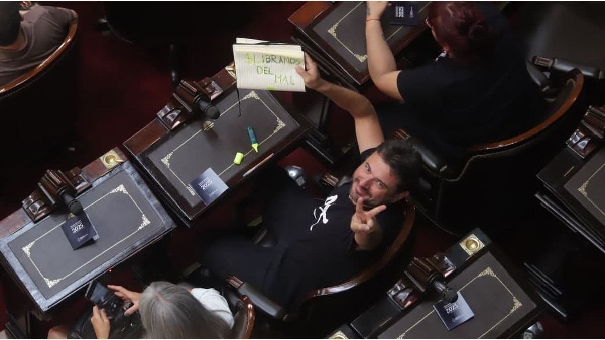 En ese marco, se observaron diferentes situaciones que dieron que hablar durante la ceremonia. Una de ellas fueron los clásicos carteles que la oposición despliega en cada oportunidad. En ese sentido, el diputado de Fuerza Patria, Juan Grabois, confeccionó su propio cartel con birome y resaltador, en el que se podía leer «$Líbranos del mal».