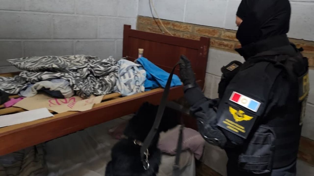 En el operativo también participó el perro detector de narcóticos Goku, quien halló marihuana oculta en la parte superior de un placard dentro del domicilio allanado.