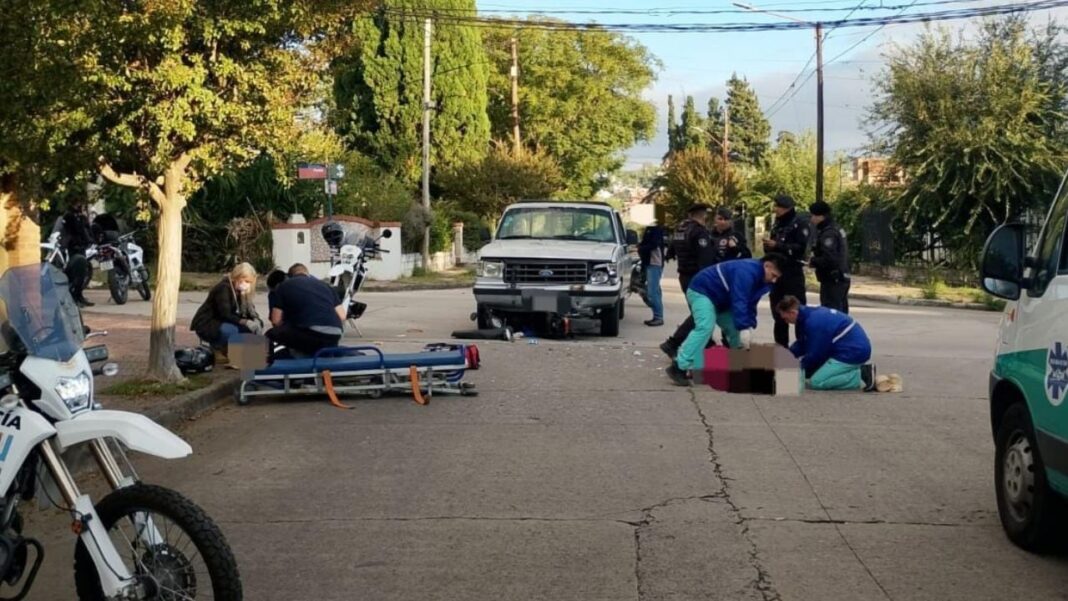 El hecho ocurrió alrededor de las 09:10 en la intersección de calles Monteagudo y Pavón, en barrio Manantiales. Según se informó, una camioneta Ford F100 conducida por un hombre de 43 años impactó contra una motocicleta Keller 110cc en la que se trasladaban un hombre de 60 años y una mujer de 50.